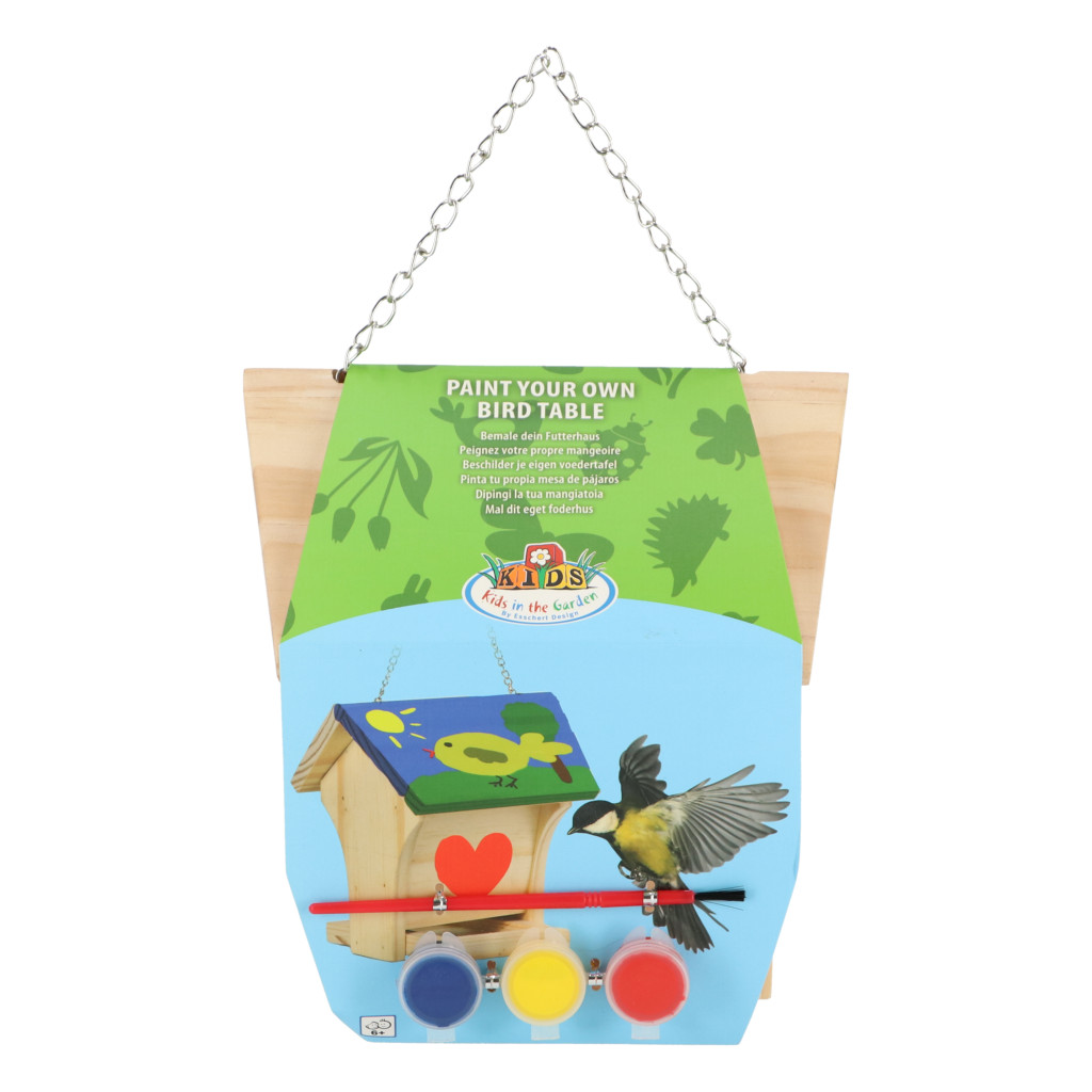Kifesthető madárház ecsettel, piros, sárga és kék festékkel. Mókás elfoglaltság a gyerekeknek, akik saját elképzeléseik szerint festhetik ki a madárházakat. Az egyre szárazabb nyarakon és zordabb teleken az állatok egyre kevesebb élelmet és vizet találnak, de egy kis odafigyeléssel könnyen segíthetünk nekik, vagy akár színes otthont is teremthetünk a számukra. Jó lehetőség, hogy a gyerekek figyelmét a környezetünkben élő állatokra és a természet fontosságára tereljük.